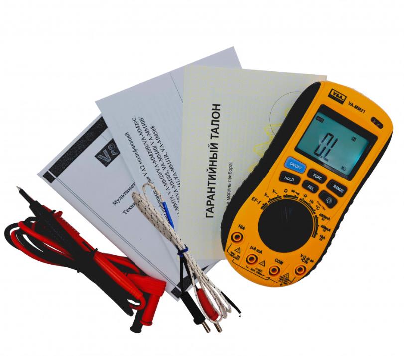 Комплектация: Мультиметр - 1 шт.; Измерительные щупы - 1 пара; Термопара К-типа – 1 шт.; Батарея 1,5V (ААА) - 3 шт.; Методика поверки – 1 шт.; Гарантийный талон; Технический паспорт изделия (на русском языке).
