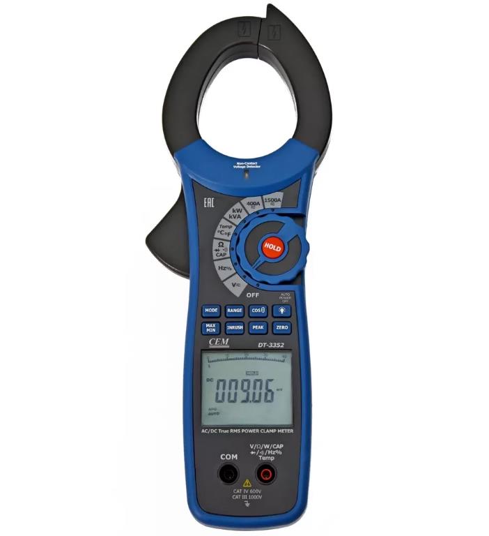 Электроизмерительные ваттметровые клещи DT-3352 — многофункциональное устройство с шириной зажима в 52 мм. Мультифункциональный прибор может измерить: