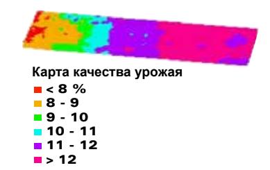 Разница по протеину в пределах одной борозды может достигать 6 %. Карты качества урожая позволяют учитывать этот фактор. Таким образом, у Вас есть возможность увеличить рентабельность